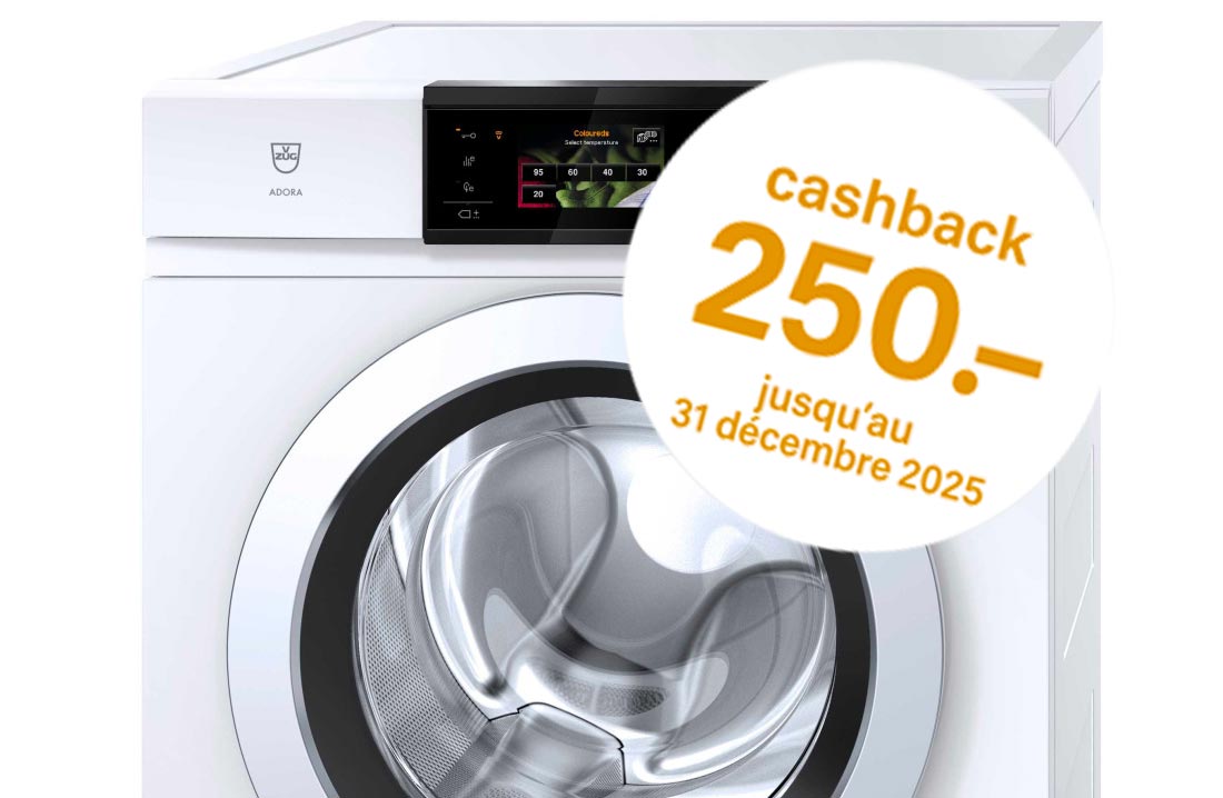 V-ZUg propose un cashback de 250.- par appareil de lavage et séchage (série V4000 et V6000)